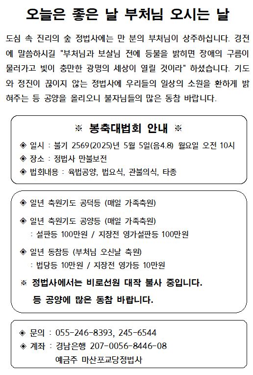 오늘은 좋은 날 부처님 오시는 날