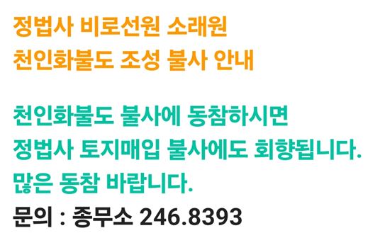 정법사 비로선원 소래원 천인화불도 조성 불사
